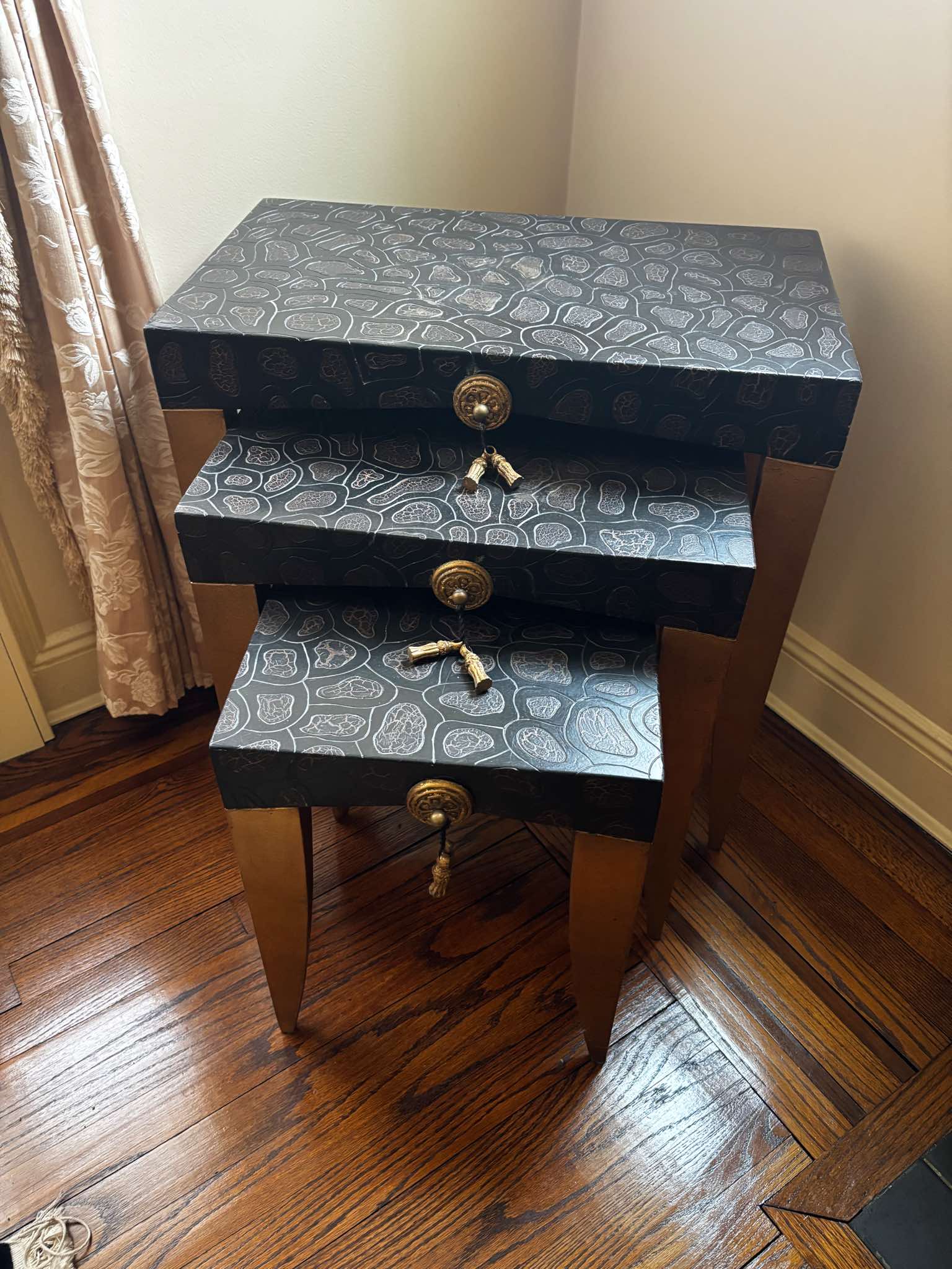 side tables • armchairs and ottoman • bicycles • lawn chairs
