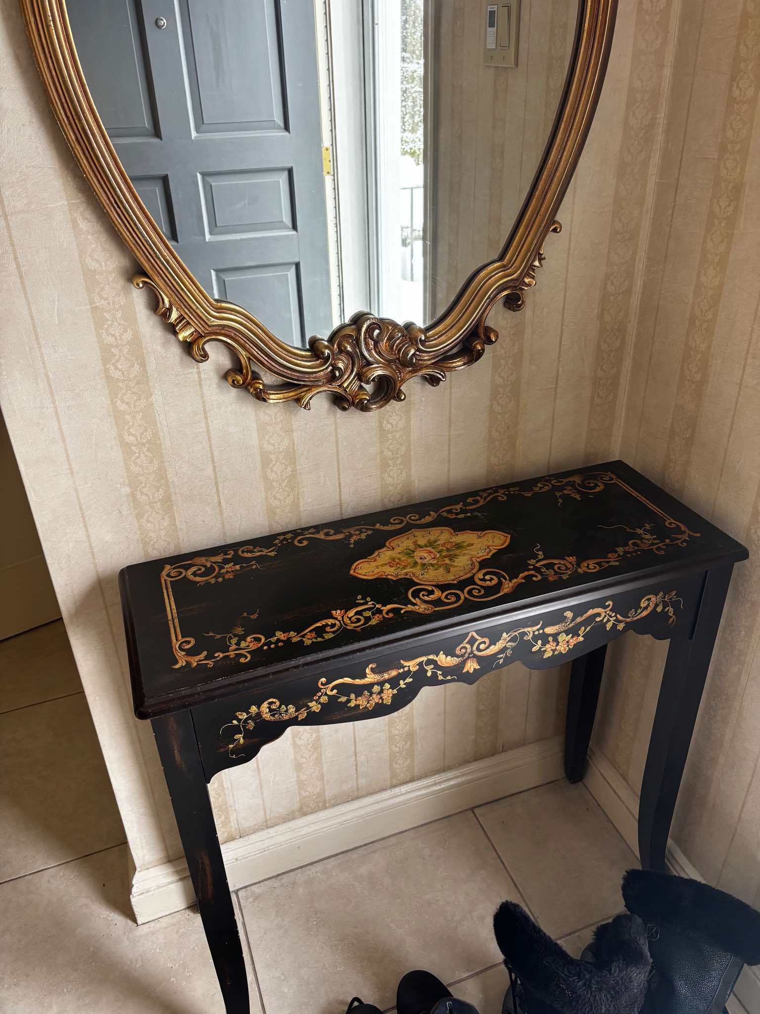 bakers rack • living room wall unit • large mirrors • bedroom set